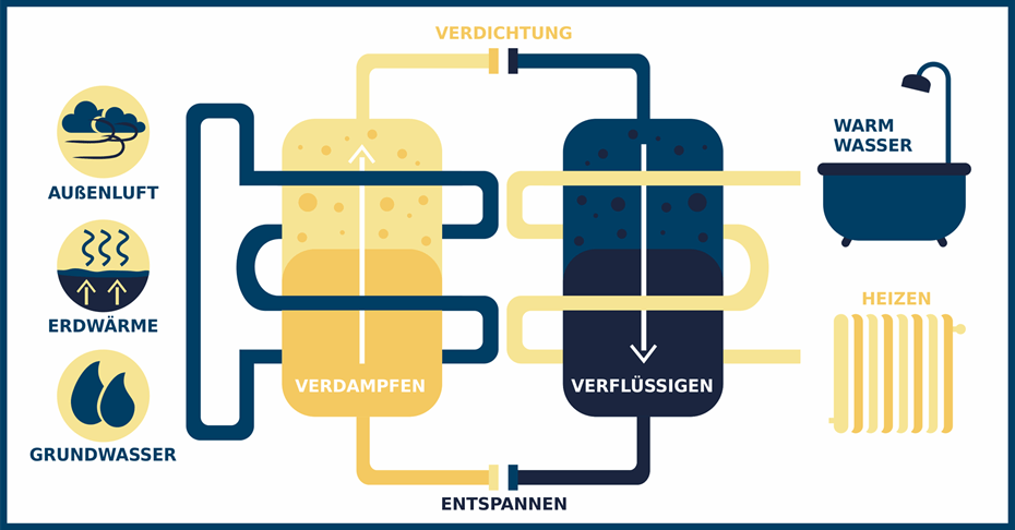 Anstatt fossile Brennstoffe zu verbrennen, gewinnen Wärmepumpen Wärme aus der Umgebung und wandeln diese in angenehme Heizwärme und Warmwasser um.